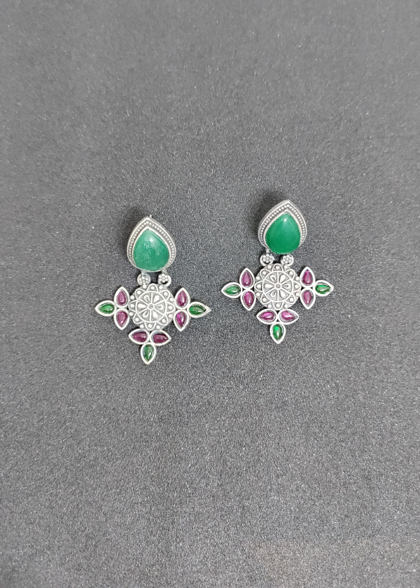 Leaf Shaped Stone Silver Finish Earrings
