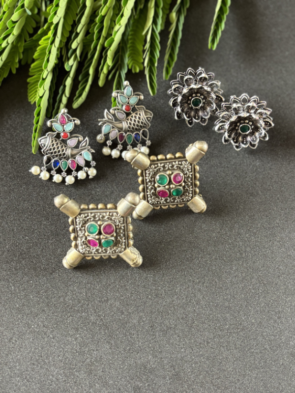 German silver Naya earrings can bring a delightful vintage charm and a distinct flair to your appearance. You can elegantly incorporate them into your outfits for festive occasions like Ganesh Chaturthi, Durga Puja, Navratri, and Diwali. Moreover, they can also become a stylish addition to your daily office wear. These earrings have the power to make your look truly unique and stand out on any occasion.
