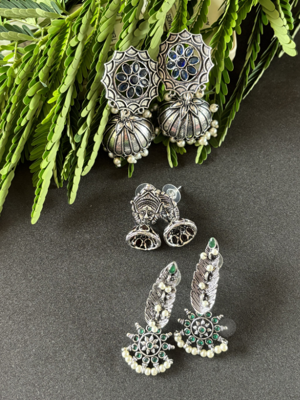 German silver Naya earrings can bring a delightful vintage charm and a distinct flair to your appearance. You can elegantly incorporate them into your outfits for festive occasions like Ganesh Chaturthi, Durga Puja, Navratri, and Diwali. Moreover, they can also become a stylish addition to your daily office wear. These earrings have the power to make your look truly unique and stand out on any occasion.